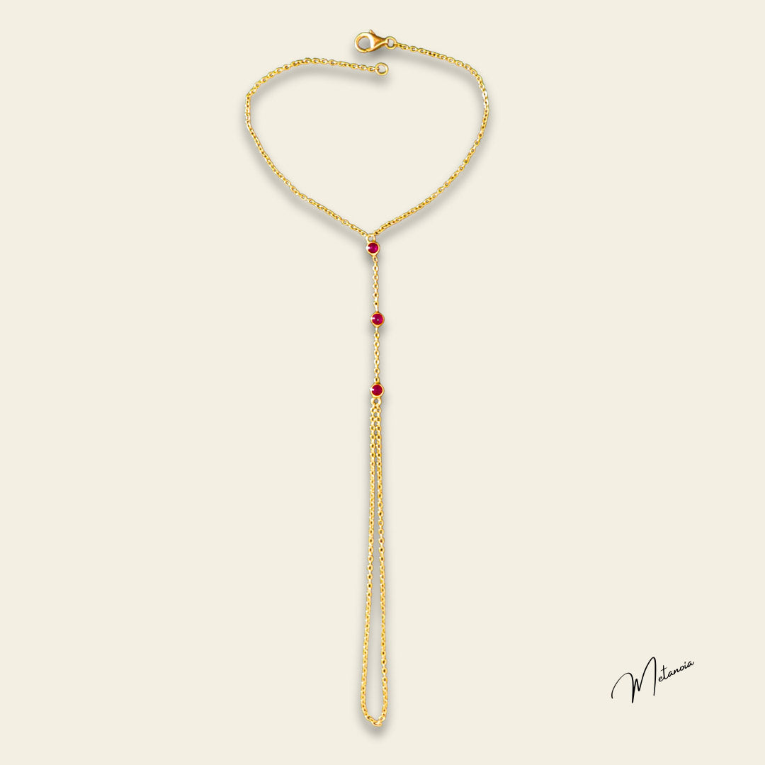 صُنعت يدويا من ذهب عيار 14 مطلي على فضة إسترلينية مع طبقة حماية متينة بسماكة 2.5 ميكرون، يتميز بسلسلة قابلة للتعديل بطول 7 إنش مع تدلٍ أنيق بطول 1.5 إنش يمنح المعصم لمسة من الرقي والجمال.